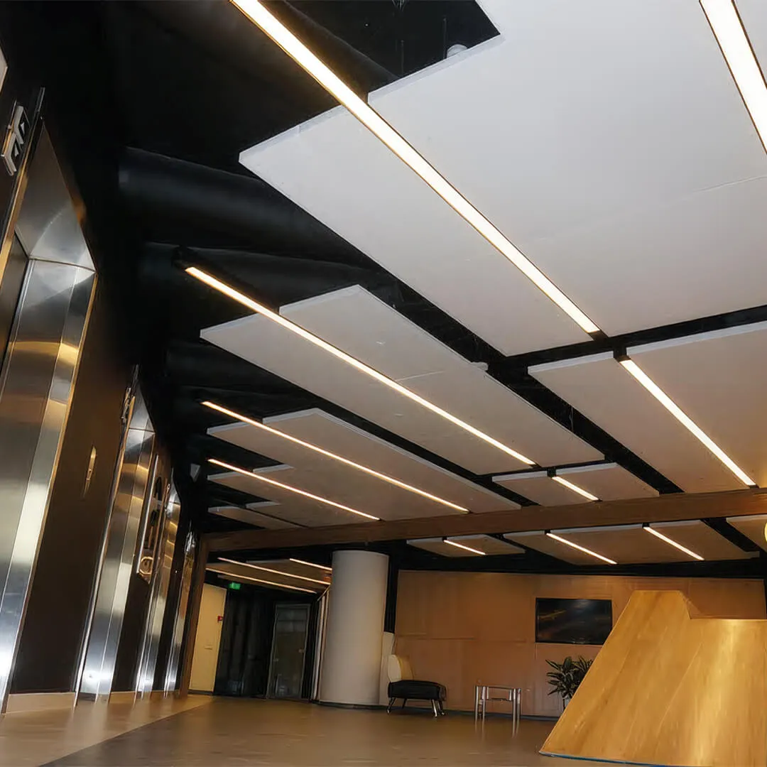- Акустические панели: обеспечивают улучшенную звукоизоляцию и комфортную акустическую среду.