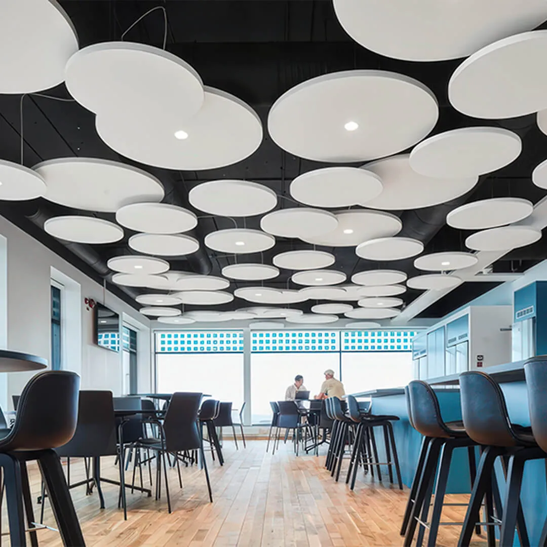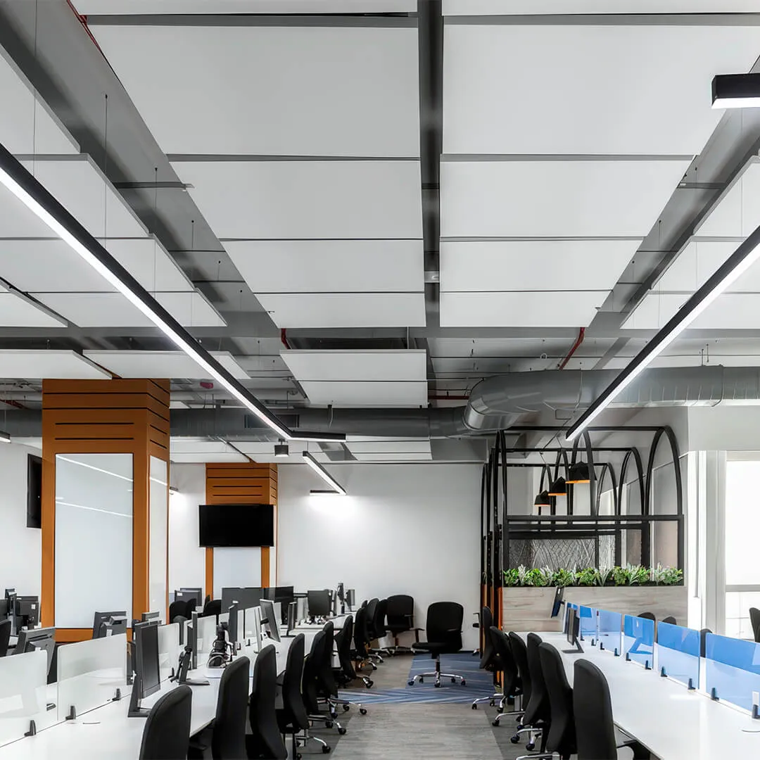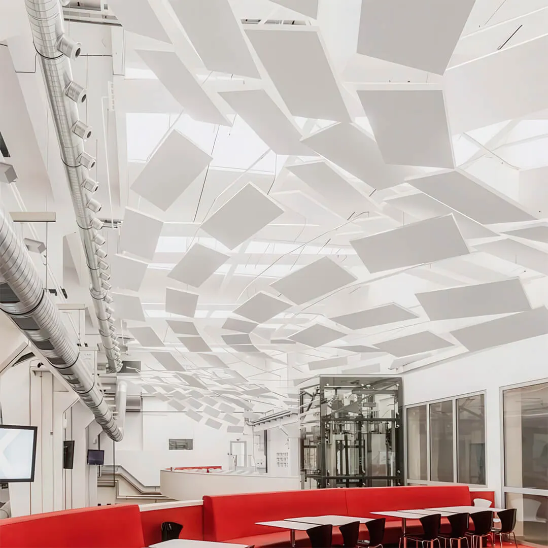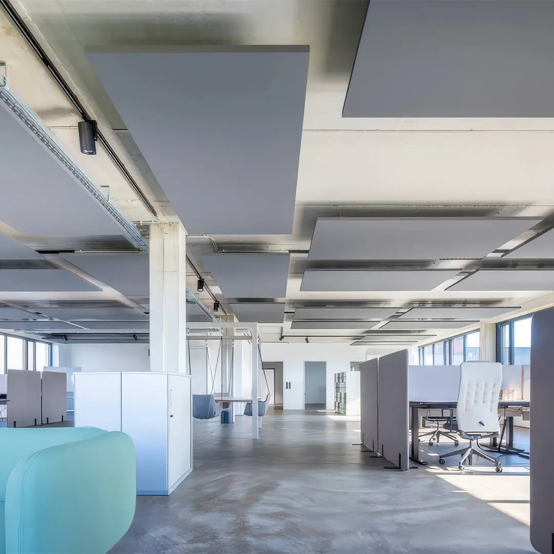 - Системы для открытых пространств: подвесные панели и облака, которые эффективно снижают шум в больших помещениях.