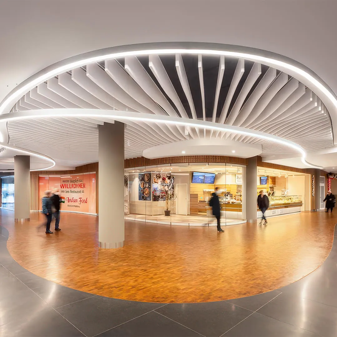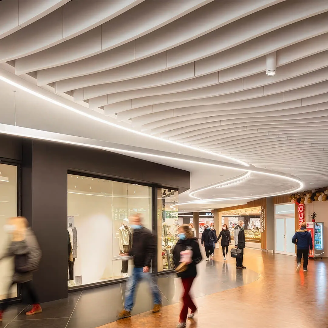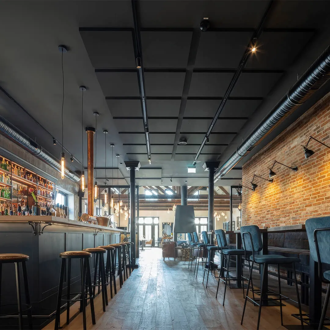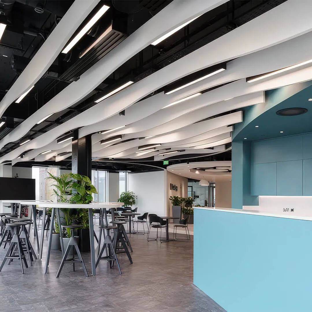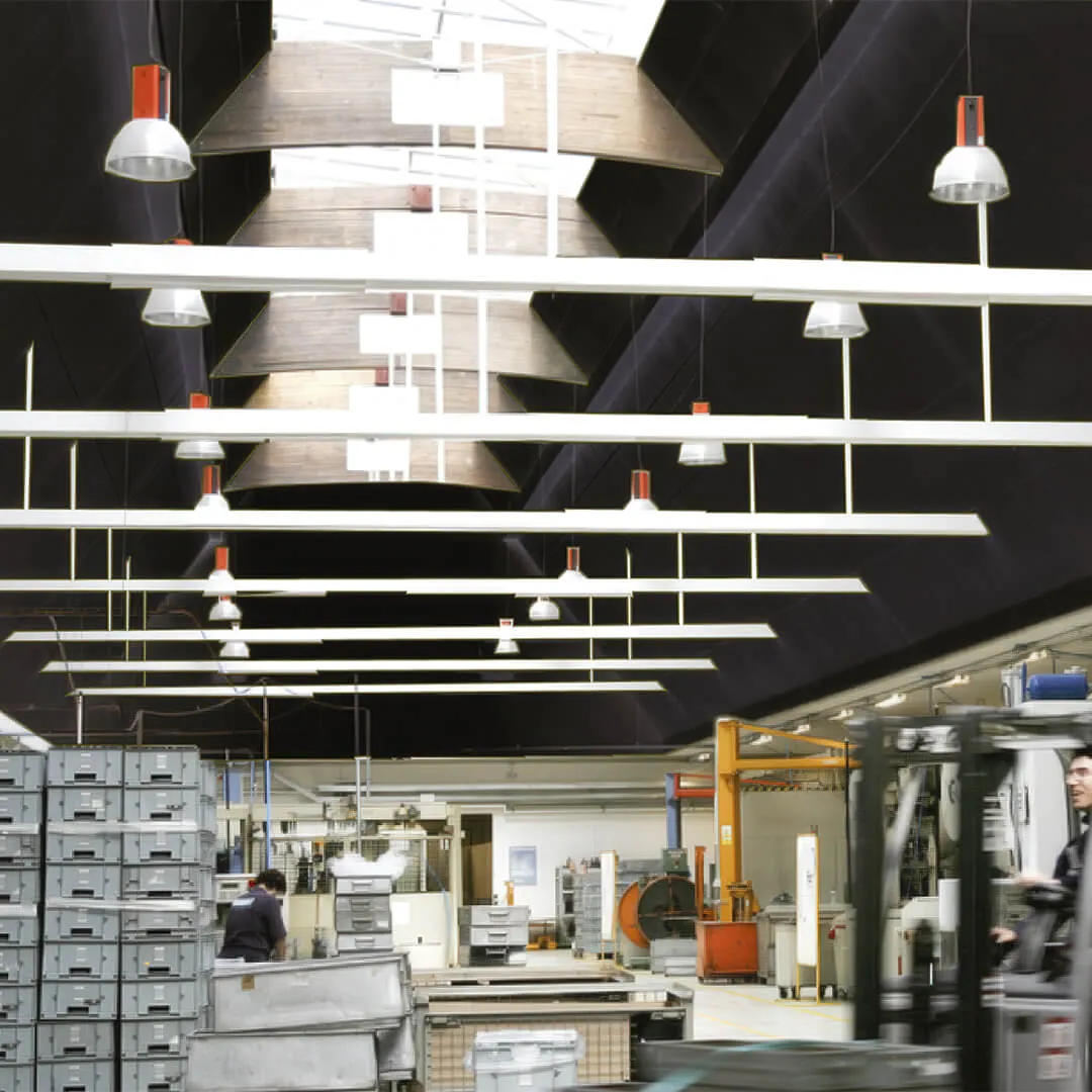 - Системы для открытых пространств: подвесные панели и облака, которые эффективно снижают шум в больших помещениях.